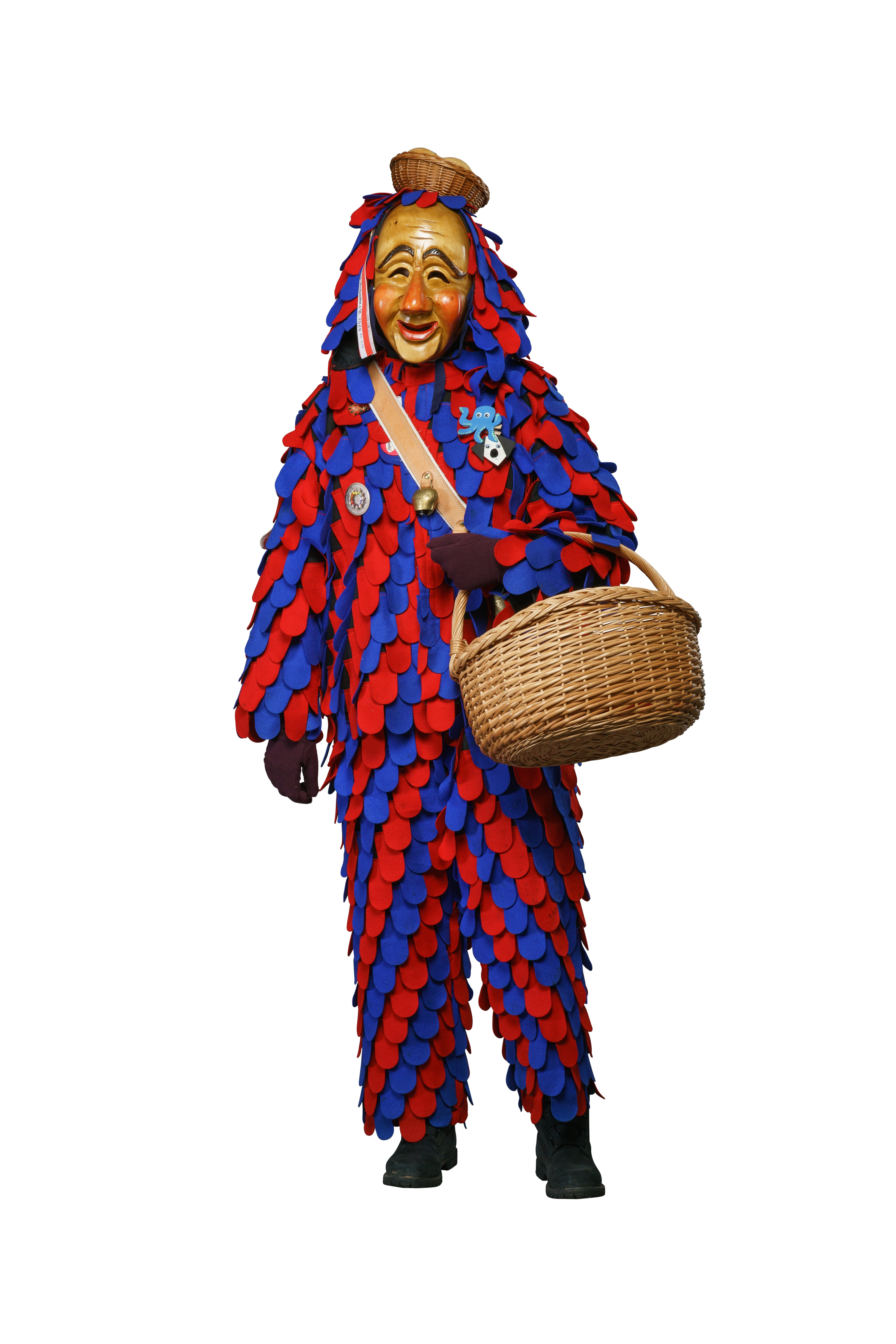 Das Häs aus 1200 Flizflecken, die in genau eingehaltenen Farb- und Musterwechsel in V-Form ausgestanzt zu Jacke und Hose gefertigt werden. Dazu gehört eine Haube aus nochmals 150 Flecken, die auf einem freundlichen Holzmaskengesicht mit verschmitzten Lächeln sitzt Dazu wird quer über die Schulter ein Glockengürtel getragen.