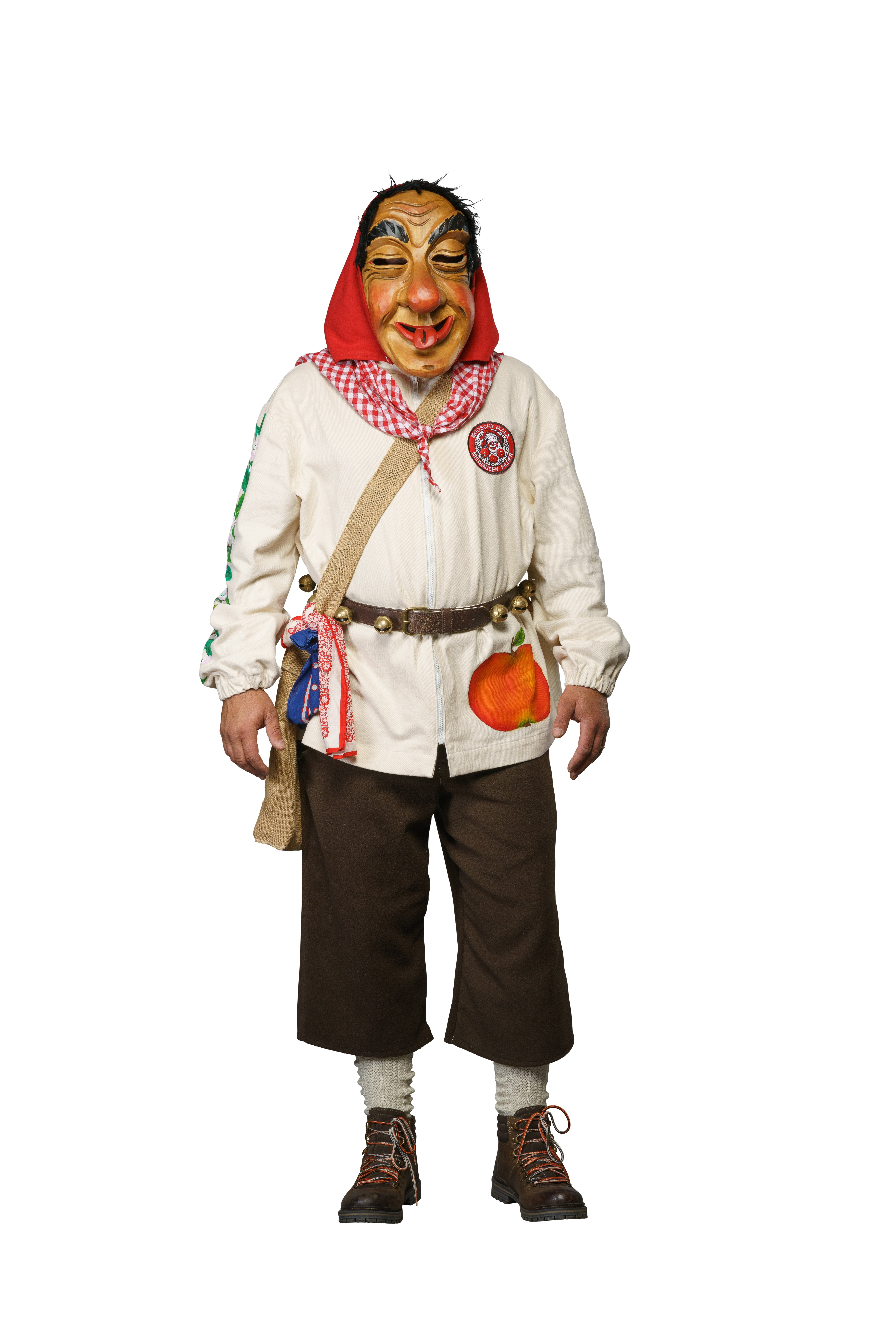 Es beeindruckt die Maske mit dem Ausdruck einer leicht angeheiterten Visage eines Obstbauern. Zottelhaare unter dem roten Kopftuch. Das Häs mit naturfarbener Hemdbluse, zu dunkler wadenlanger Hose, die einen Apfel- bzw. Birnenbaum stilisiert. Helle Strümpfe und ein blau oder rot kariertes Halstuch und Moscht- Utensilien runden das Gesamtbild ab.